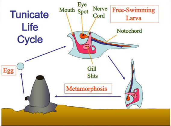 This is a relatively brief period in the sea squirt’s life. They cannot feed in this stage, so they swim off, find a nice little bit of seabed to settle in on, and then plant themselves.